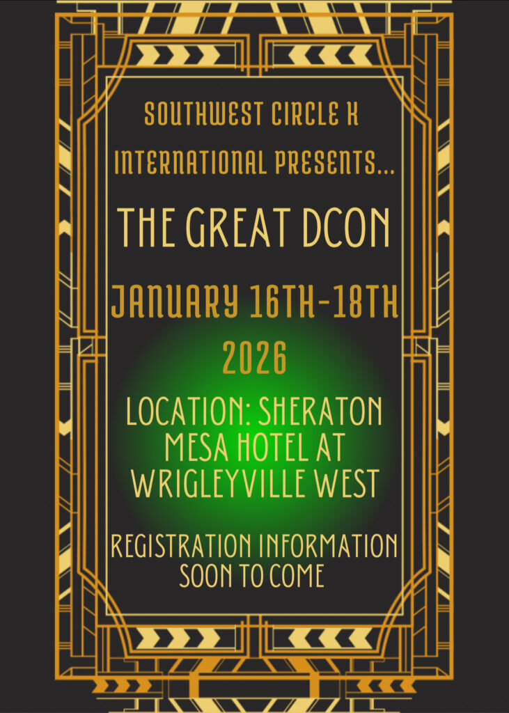 Come join the Southwest District on January 16th – January 18th 2026 in Mesa, AZ for a weekend to celebrate all we have accomplished as a district. Registration link coming soon and we hope to see you there!